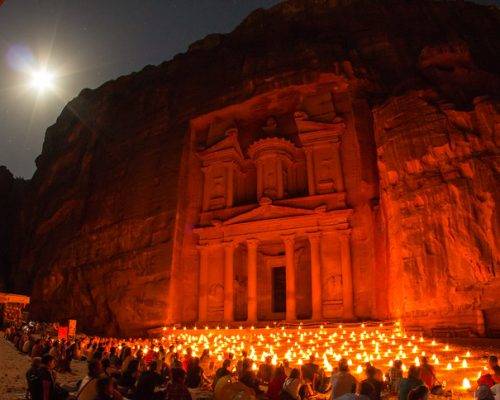 Após o café da manhã, visita à maravilhosa cidade arqueológica de Petra: Tesouro, Teatro, Local dos Sacrifícios, Tumbas Reais, etc. À tarde, visita ao sítio