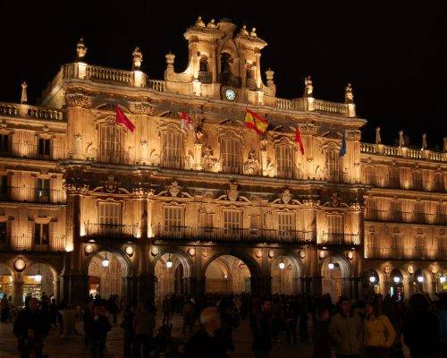 Cidade espanhola que encontra-se a famosa Universidade de Salamanca, pública, e é uma das cidades mais ricas da Espanha em monumentos da idade média, como a Plaza Mayor.